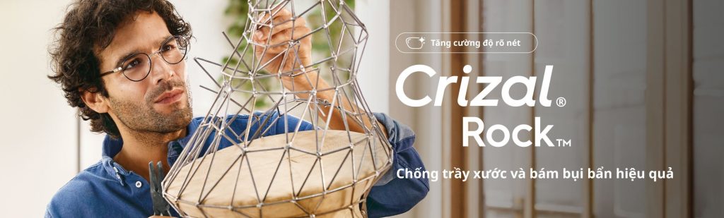 CRIZAL ROCK - CÔNG NGHỆ TIÊN TIẾN TĂNG CƯỜNG HẠN CHẾ XƯỚC VÀ BÁM BẨNSự kết hợp hoàn hảo giữa khả năng hạn chế trầy xước và bám bẩnCuộc sống của chúng ta ngày càng đa dạng và năng động với nhiều hoạt động làm việc và giải trí. Do đó, tròng kính cũng liên tục tiếp xúc với nhiều tác nhân từ môi trường như cát, bụi, nước, dầu bẩn …dẫn đến tăng khả năng bị trầy xước và giảm tuổi thọ tròng kính.Crizal Rock - Tròng kính bền bỉ và trong suốt vượt trôi thế hệ mới, với công nghệ tiên tiến tăng cường khả năng hạn chế trầy xước gấp 3 lần và hạn chế bám bẩn gấp 2 lần giúp bạn hoàn toàn thoải mái và tự do trong mọi hoạt động hàng ngày.Crizal® Rock™ cải thiện hai đặc tính quan trọng đáp ứng kì vọng của người sử dụng: Khả năng chống trầy xước và bám bẩnTính năng: