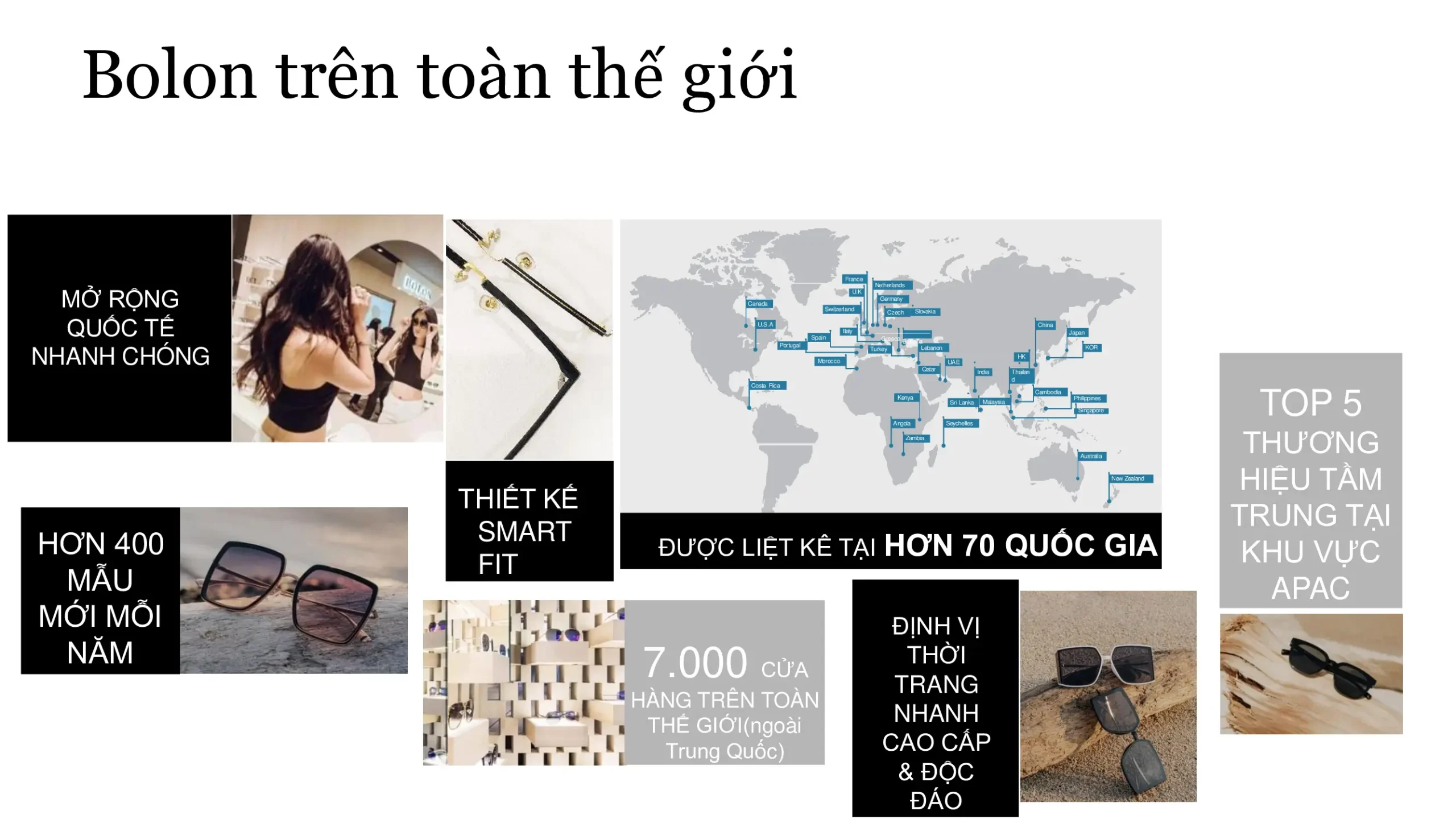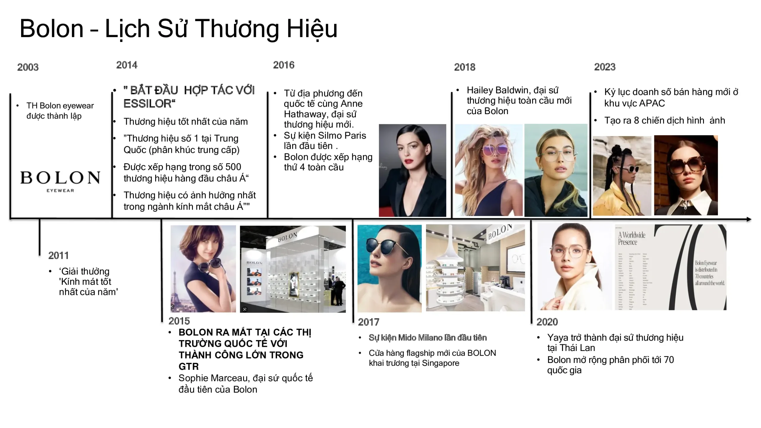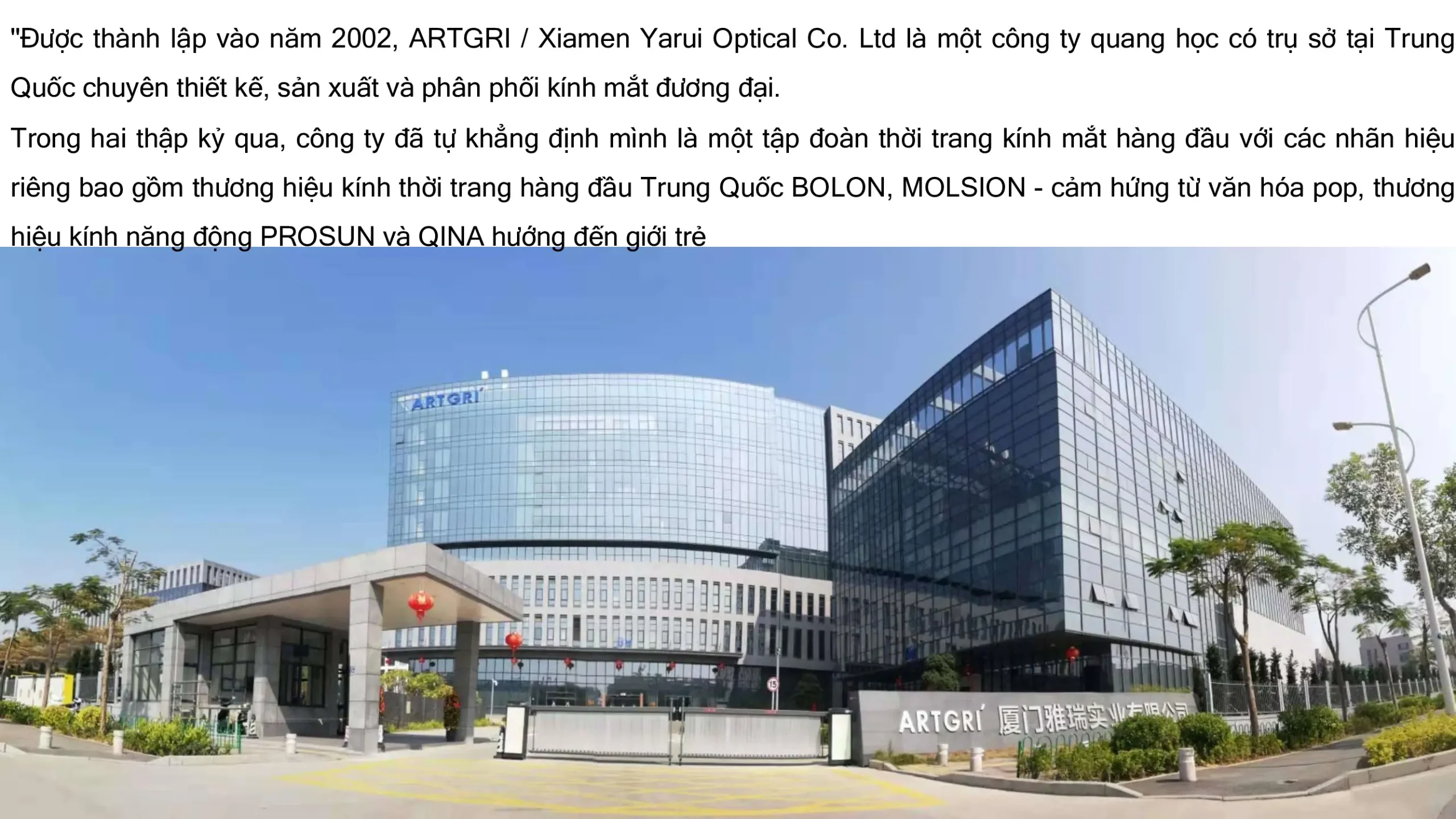 BOLON Eyewear là thương hiệu mắt kính nổi tiếng thuộc tập đoàn Essilor nay đã sát nhập vào tập đoàn Luxottica của Ý với phong cách thời trang cá tính, thiết kế ấn tượng dành riêng cho giới trẻ được đại diện thương hiệu bởi những người nổi tiếng hang đầu châu Á như Thái Từ Khôn, Angela Baby, Tiêu Chiến, Địch Lệ Nhiệt Ba,…Lịch sử và quy mô nhà máy