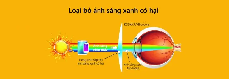 tái tập trung liên tục sẽ tạo thêm áp lực đáng kể cho mắt và gây mỏi mắt. Kodak UVBLue Lens chặn bước sóng đặc