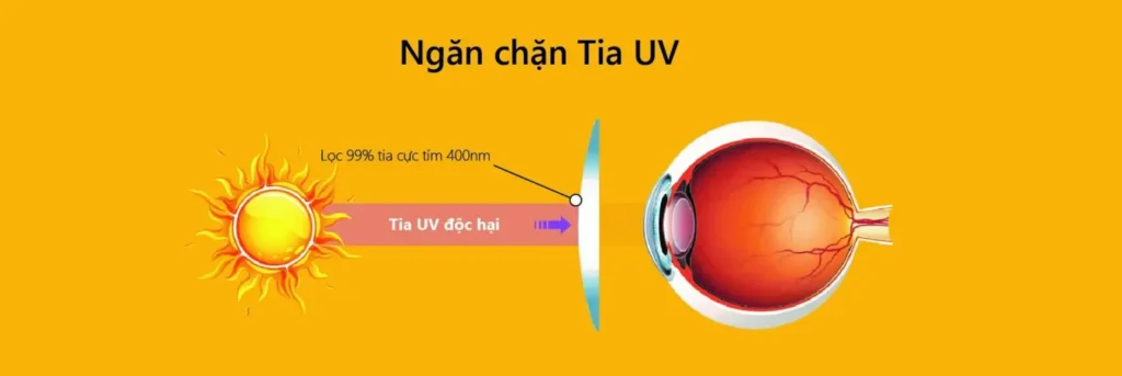 - Chặn 100% tia cực tím ( UV) để giảm nguy cơ đục thủy tinh thể