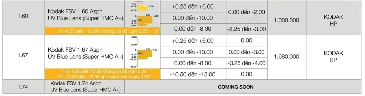 kính không có lớp phủ váng dầu này thì độ truyền quang sẽ giảm đi 10% và tầm nhìn cũng giảm sút. Tròng kính Kodak